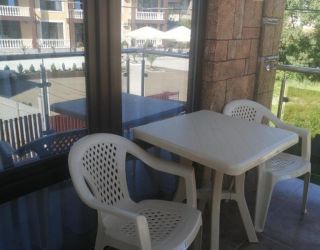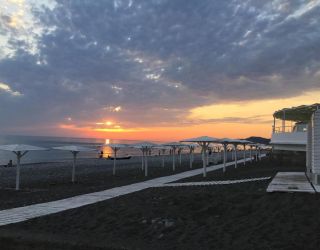 В паре минут ходьбы расположен мелко-галечный пляж. На побережье установлены надувные горки, есть навесы и зонтики от солнца, лежаки, раздевалки, работают душевые.