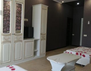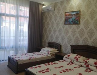 Трехэтажный корпус гостевого дома разместился на тихой зеленой улице курорта в 250 метрах от моря. В распоряжении гостей комфортабельные номера с индивидуальными санузлами. В каждом номере есть кондиционер и балкон, оборудованный мебелью и сушилкой, а также техника: телевизор, фен, мини-холодильник, утюг.