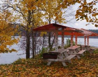 Гости базы размещаются в домиках двух типов — с удобствами и без удобств. Весь жилой фонд приспособлен к длительному проживанию в любое время года.