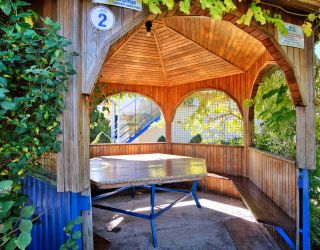 После насыщенного дня, есть возможность насладиться атмосферой финской сауны или посетить сеанс массажа, чтобы расслабиться и ощутить прилив энергии. Купание в теплых термальных источниках дарит бодрость и жизненную энергию на весь день. Территория базы отдыха благоустроена с учетом изысканного ландшафтного декора, есть зеленый двор, разнообразные растения, цветы и даже альпийские горки. Для маленьких гостей доступны современные детские развлечения, включая игровую площадку и специальную комнату для игр и развлечений. Весь период пребывания детей сопровождает опытный анимационный персонал, гарантирующий им незабываемое и веселое время отдыха.