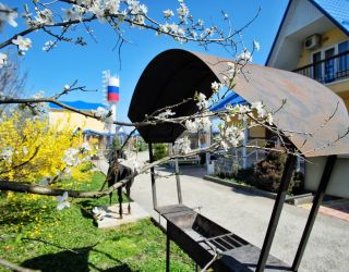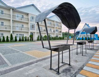 Уютные номера располагаются в 2-этажных гостиничных корпусах. Интерьер комнат выполнен в спокойных, пастельных оттенках. Во всех номерах, независимо от их категории, гости найдут основные удобства, такие как кровати, тумбочки, шкафы, освещение, холодильники, чайники, столы и стулья, а также телевизоры. Некоторые номера имеют выход на балкон, где можно насладиться свежим воздухом. Каждое утро для гостей сервируется вкусный завтрак. На территории отеля функционирует кафе, предлагающее разнообразные блюда русской, японской, европейской и кавказкой кухни. В баре отдыхающих ждет широкий выбор легких закусок и вкуснейших напитков. На территории для гостей предоставлены специальные беседки, где можно отдохнуть и расслабиться. Также доступны зоны для приготовления барбекю с мангалом и грилем.