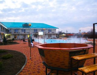 На территории базы отдыха для гостей работает небольшое кафе, обустроена мангальная зона с беседками. В распоряжении отдыхающих два открытых бассейна с горячей термальной водой и настоящая русская баня, где можно расслабиться после насыщенного дня. Среди услуг — охраняемая парковка возле корпуса, беспроводной интернет, а для детей организована игровая площадка с горками.