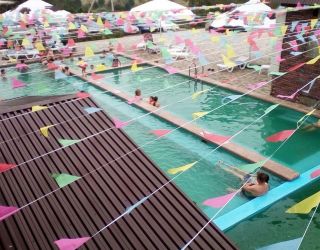 Хорошее место. Можно снять номер. Можно просто посидеть в общем зале. Несколько бассейнов. Для детей есть с маленькой глубиной+горка.