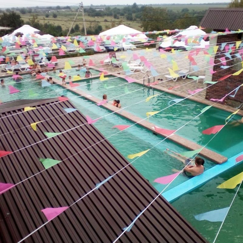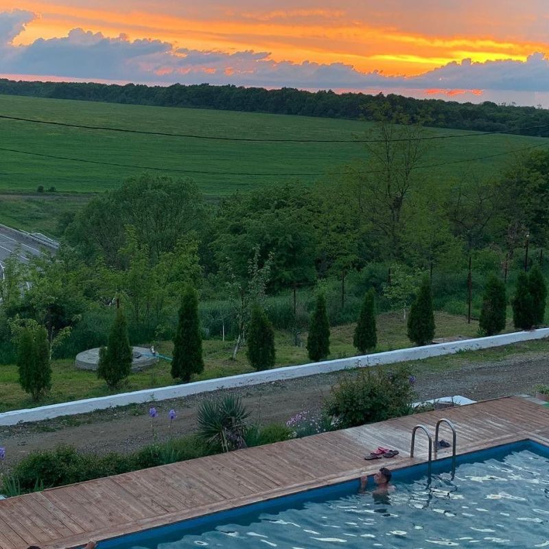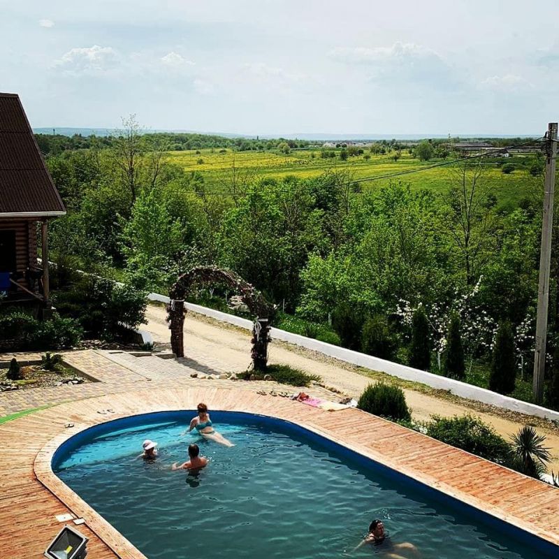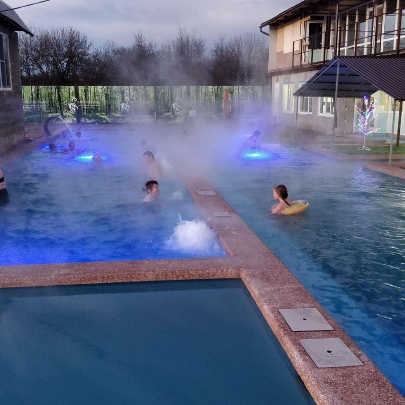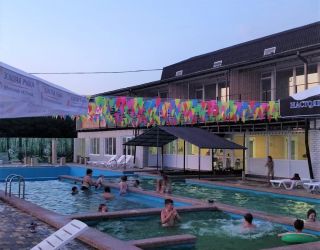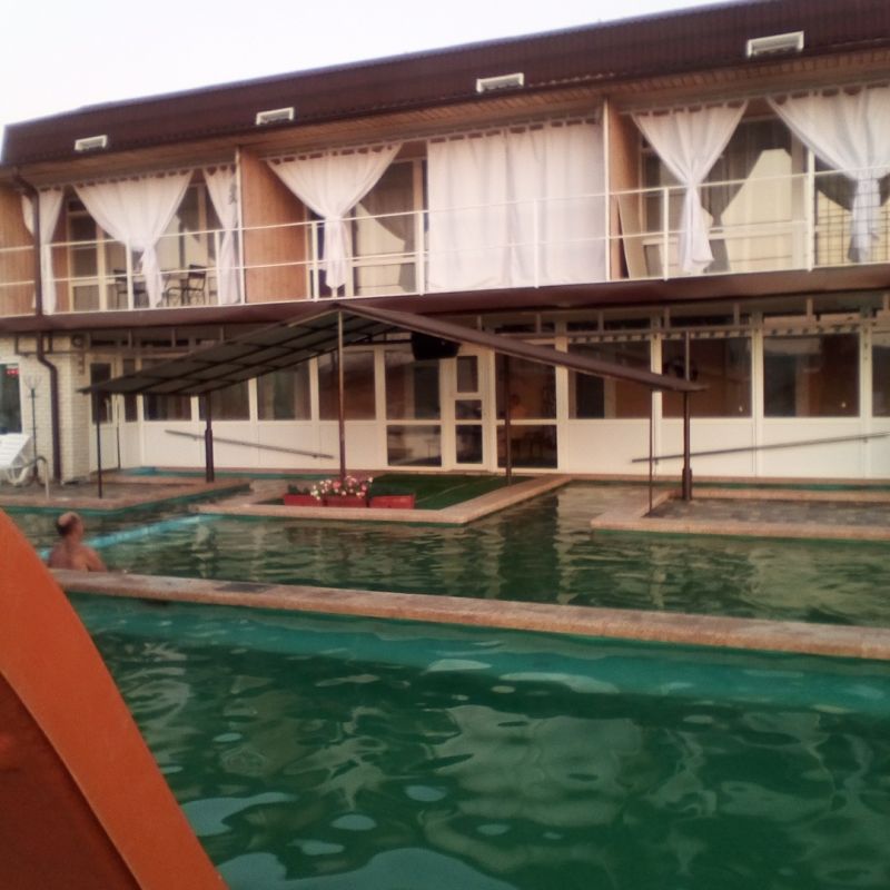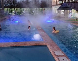 Хороший вариант для отдыха выходного для семьи с детьми. Теплая вода не оставляет равнодушными ни детей, ни взрослых, а бассейны разной глубины позволяют каждому найти уютное местечко для отдыха. Около бассейна есть шезлонги, на которых можно расположиться в перерывах между водными процедурами. Предусмотрены раздевалки с душем. Также есть закрытая веранда, где можно находиться в непогоду. Номера на разное количество гостей позволяют разместиться всей семьей.