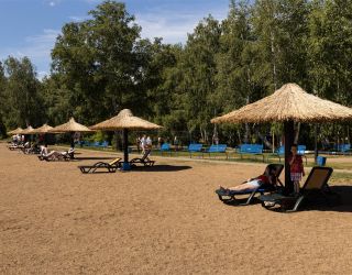 Неподалеку от корпусов находится песчаный пляж, где за дополнительную оплату можно арендовать шезлонги, зонты от солнца и лежаки. Отдыхающие могут бесплатно посещать бассейн, который расположен в одноэтажном здании.