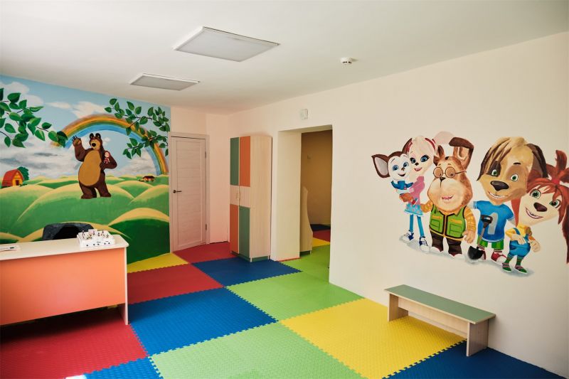 Детский досуг также продуман - есть игровая комната и три детских площадки на территории, проводится детская анимация, а также осуществляется прокат детских велосипедов, роликов, коньков и лыж.