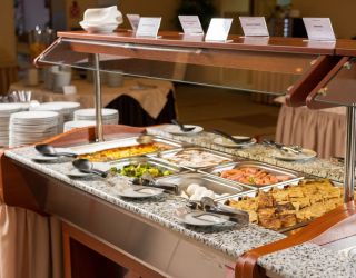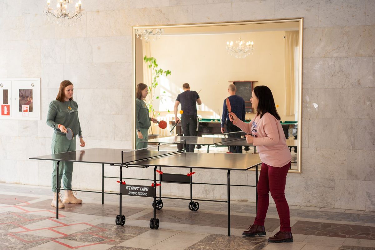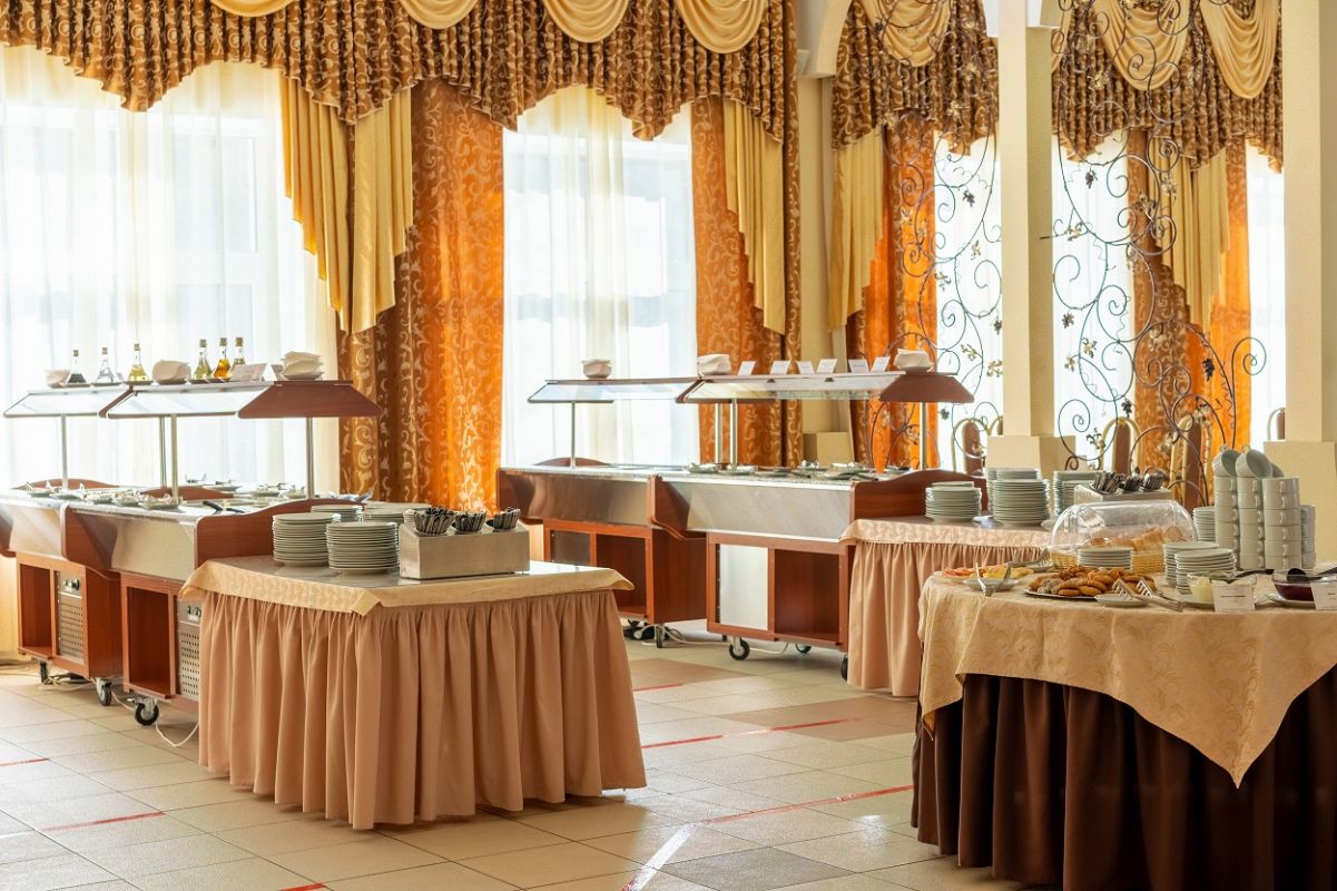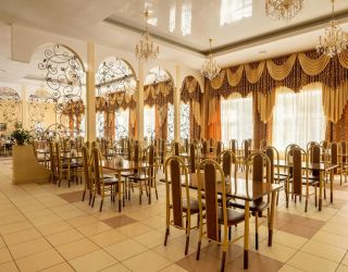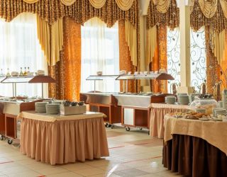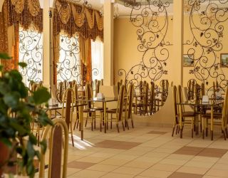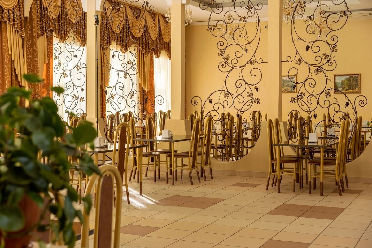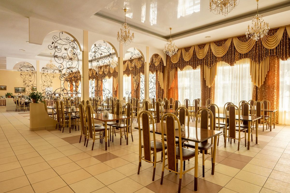Питание организовано в столовой. Также работает ресторан, в котором подают разнообразные блюда и напитки. Во дворе комплекса есть беседки с мангалами и кострищем. Гости смогут не только отдохнуть на свежем воздухе, но и приготовить шашлык для себя и своих близких. Отдыхающим предлагается посетить спа-комплекс с сауной, хаммамом, тренажерным залом и крытым бассейном. На территории санатория есть развлекательный центр, в который входят зона для настольного тенниса и бильярда, а также кинозал.