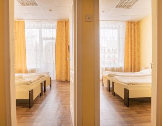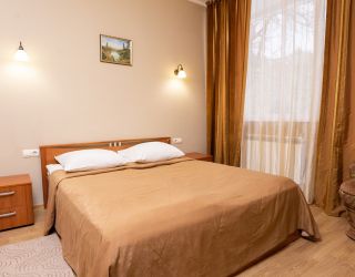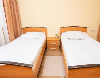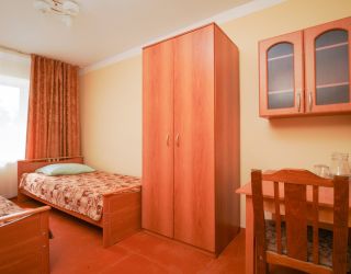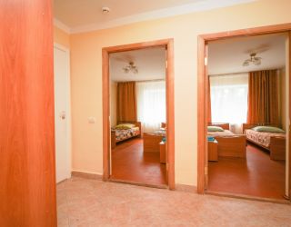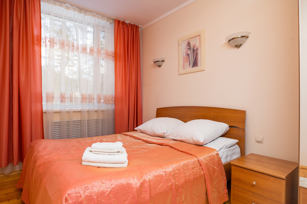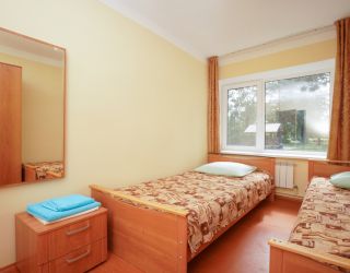 Номера расположились в 3-этажном спальном корпусе, из которого можно перейти в столовую и медицинский блок. В номерах установлена удобная спальная мебель, есть места для хранения одежды. Также к услугам гостей телевизор, холодильник. Санузел индивидуальный, с душем и полотенцами.