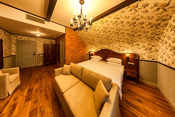 Номерной фонд, рассчитанный на размещение 60 человек, предлагает отдыхающим номера категории Стандарт и Джуниор, напоминающие замковые покои. Каждый из них укомплектован резным мебельным гарнитуром из ясеня, стилизованным под старину, вместе с тем, имеется необходимая бытовая техника и ванная комната с душем.