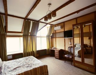 Жилой 3-этажный корпус отеля разместился на благоустроенной территории с небольшими фонтанчиками, водопадами и уютными беседками. Для удобства гостей до второго этажа ходит лифт. Отдыхающих ожидают двадцать четыре двухместных номера, оформленные в разных стилях. Номера категории Стандарт, Супериор, Люкс и Студио оснащены удобным мебельным гарнитуром, телевизором, кондиционером, санузлом с душем или ванной.