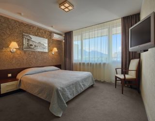 Восьмиэтажный корпус отеля, оснащенный лифтом, возвышается на пересечении главных улиц района. Гостиница обладает обширным жилым фондом и способна единовременно принять более 360 человек. Гостей ожидают 182 комфортабельных номера разных категории. В номерах стильный интерьер, есть все, что необходимо для комфортного проживания — кондиционер, бытовая техника, санузел с душем, апартаменты оборудованы мини-кухней. Из окон отеля открываются живописные виды на на гору Бештау и Эльбрус.