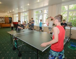 Отдыхающие могут заказать в столовой комплексное питание, в том числе и диетическое. В распоряжении гостей тренажерный зал, спортивная площадка, настольный теннис. По вечерам устраиваются кинопоказы, проходят концерты и танцы, гости могут спеть в караоке или посетить досуговое мероприятие. Особенно хорошо в здравнице развита инфраструктура для детей: работает компьютерный куб и видеозал, организована детская комната с настольными играми, уличная игровая площадка с горками и качелями. Родители малышей могут взять в аренду детские кроватки и стульчики для кормления или воспользоваться услугами няни.