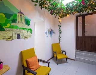с интересным дизайном. В каждом номере – кровать, кондиционер, плазменный телевизор, санузел с душевыми – общие и расположены на этаже.