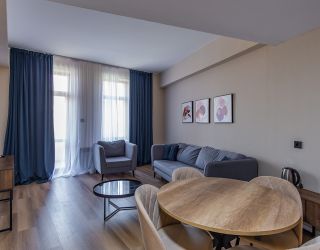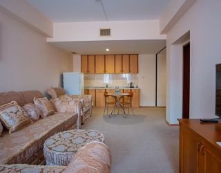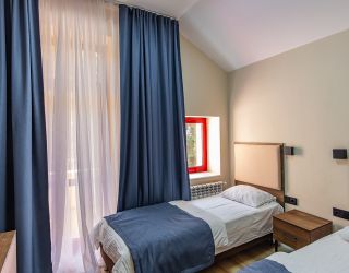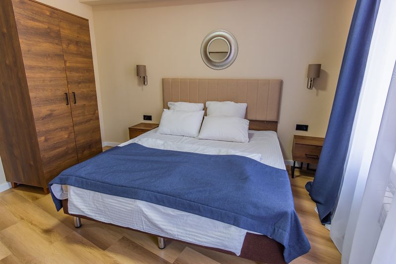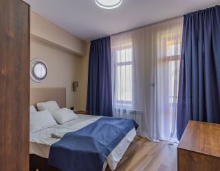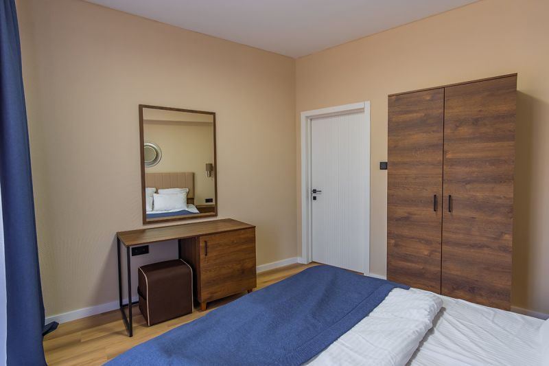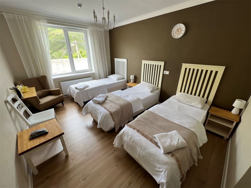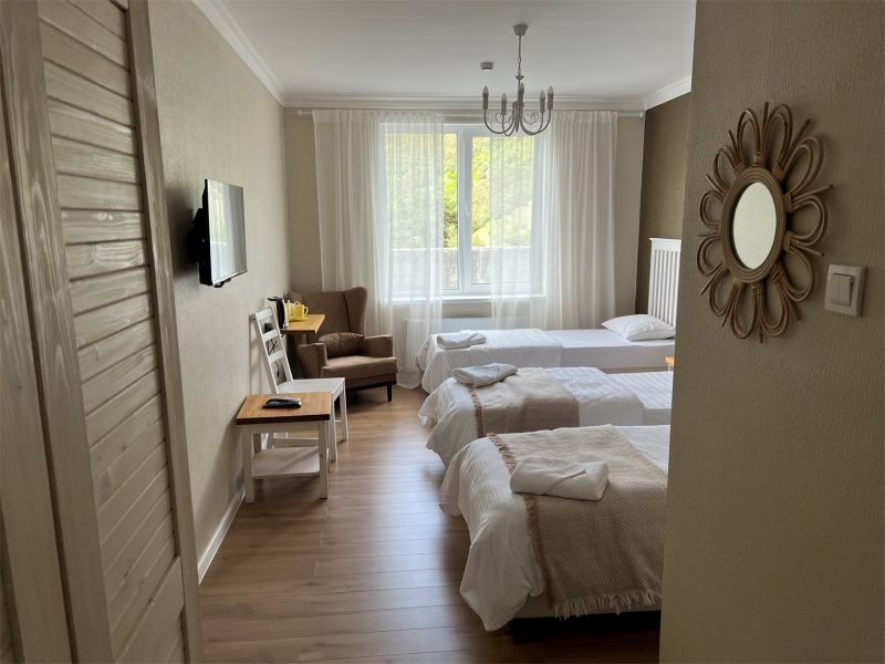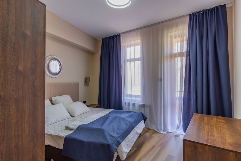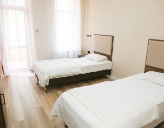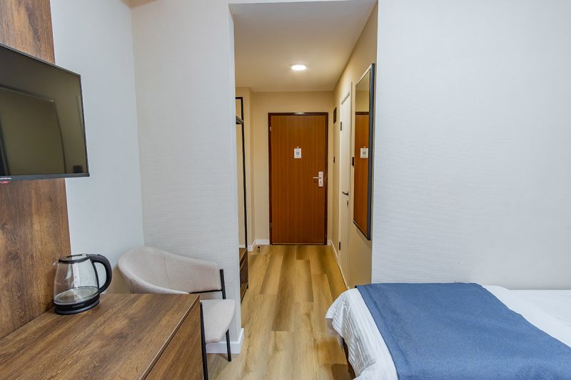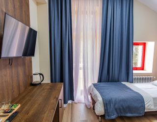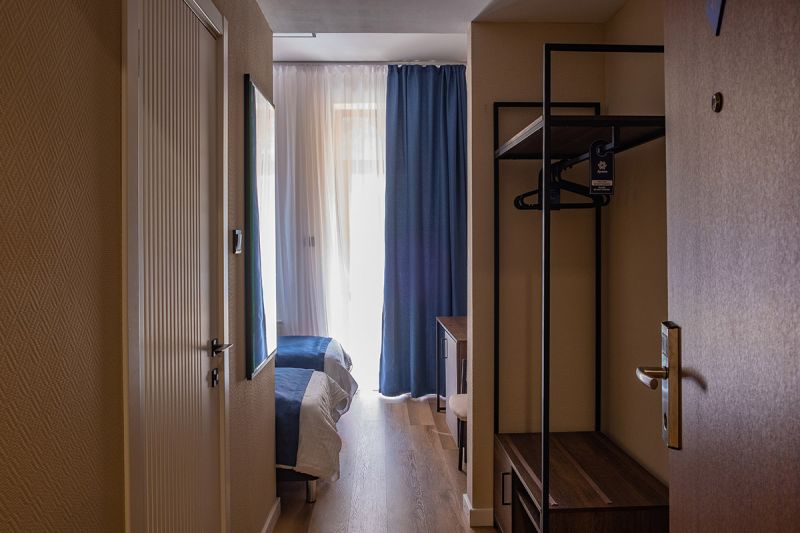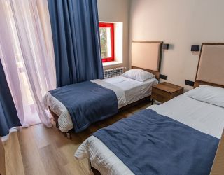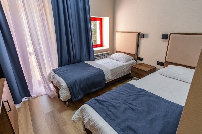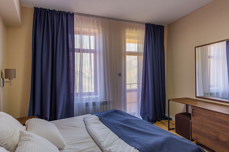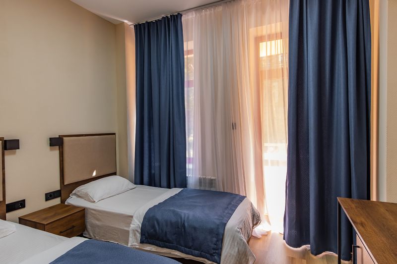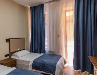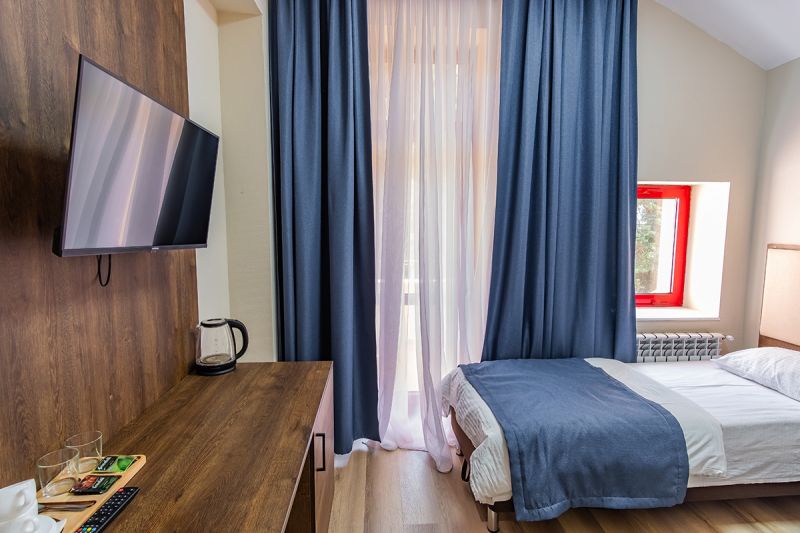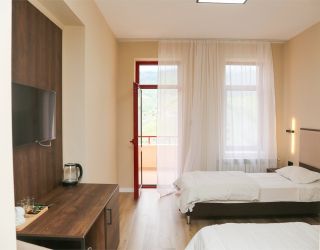 Шестиэтажное современное здание гостиницы возвышается в окружении живописных зеленых гор. Гостей ожидают 59 номеров с лаконичным светлым интерьером. В каждом номере предусмотрен санузел с косметическими наборами, есть холодильник и телевизор.