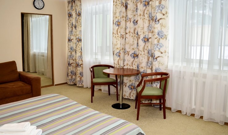 Самолетом до аэропорта г. Уфы, далее на автобусе №101 до Южного автовокзала, далее на междугороднем автобусе №585 Уфа-Карагай до санатория.