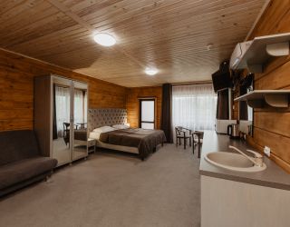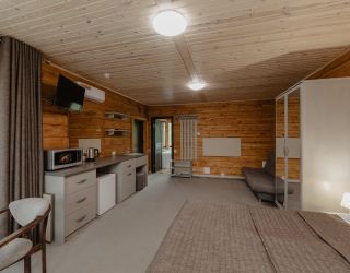 На закрытой территории отеля расположены современные двухэтажные коттеджи. В распоряжении гостей благоустроенные номера по четыре в каждом коттедже. В номерах имеется собственная мини-кухня, балкон или терраса, где можно выпить чай и полюбоваться красивыми видами. Везде есть электрочайник, микроволновая печь, холодильник. В ванной комнате - душевая кабина, фен и наборы косметических принадлежностей.