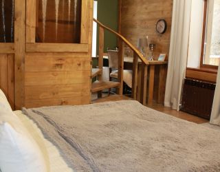 Для проживания гостей обустроено два корпуса - гостиница у реки и гостевой дома с аутентичными номерами на втором этаже дома на главной аллее Сада. Все номера просторные и полностью благоустроены, во втором корпусе имеют общую гостиную и индивидуальные балконы.
