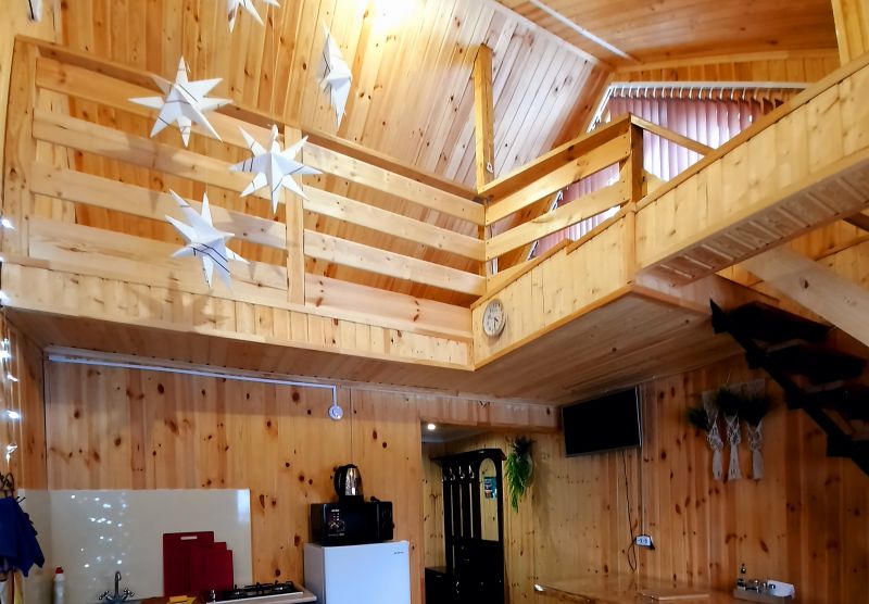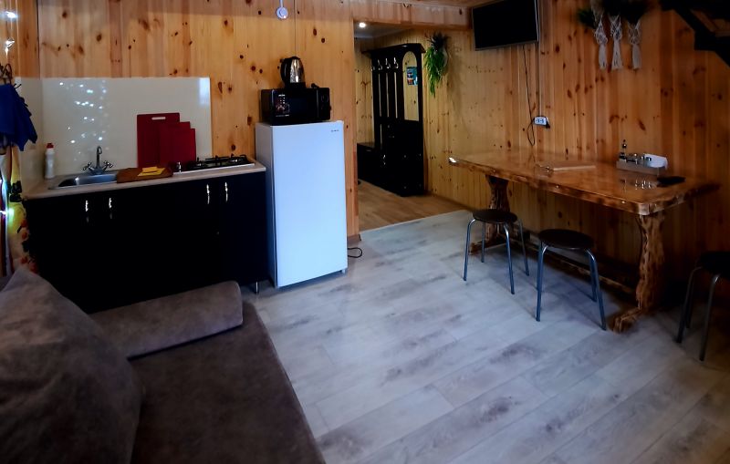 При въезде на территорию парка взимается оплата. Экстерьер базы отдыха выдержан в минималистичном эко-стиле. Бревенчатые дома и деревянные скай-дома с панорамными окнами выполнены с большим вниманием к деталям. Каждый дом оборудован кухонной зоной, посудой, необходимой бытовой техникой и мангальной зоной.