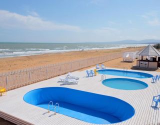 Маленьким постояльцам можно поиграть на детской площадке. Регулярно проводятся анимационные мероприятия. Всего в 100 метрах находится широкий частный песчаный пляж, где можно насладиться ласковым морем и ярким солнцем.