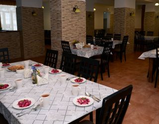 В санатории работает столовая, где можно заказать себе 4-х разовое комплексное питание, также организована зона для барбекю. В распоряжении отдыхающих крытый бассейн, спелеокамера. Свой досуг гости могут скрасить за игрой в бильярд, в танцевальном зале, за просмотром кинофильмов или концертных программ. Любителям активного отдыха доступны тренажерный зал, оборудованные спортивные площадки, теннисный корт, футбольное поле. Зимой прокладываются лыжные трассы и заливается каток. В актовом зале, рассчитанном на 120 человек, можно провести деловое мероприятие: семинар, конференцию, встречу. Для юных гостей в санатории организован детский городок, есть бельчатник, работает игровая комната.