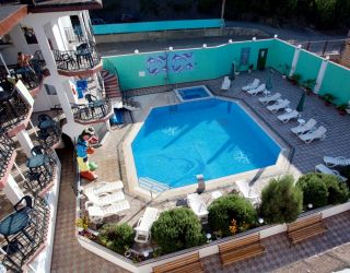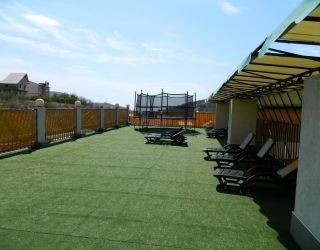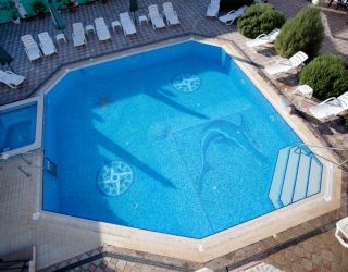 На открытой территории обустроен большой открытый бассейн с зоной джакузи. Вокруг располагаются шезлонги, на которых можно отдохнуть и позагорать. Для автовладельцев предусмотрена стоянка. Ближайший пляж очень просторный, отличается чистым берегом и пологим входом в воду.