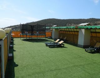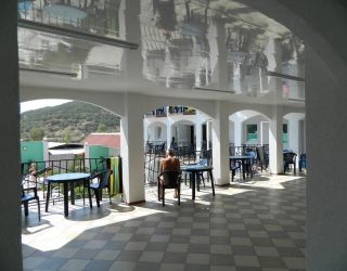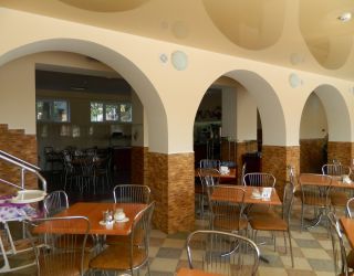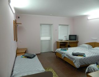 Номерной фонд разного уровня вместимости расположился в 3-этажном корпусе. Комнаты полностью мебелированы, в них есть кондиционер, телевизор, Wi-Fi, сейф. Санузел индивидуальный, с душем, полотенцами и туалетными принадлежностями. На территории пансионата работает столовая, где можно насладиться блюдами домашней кухни. В качестве развлечений гостям доступно посещение бильярдной с баром.
