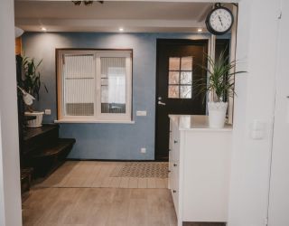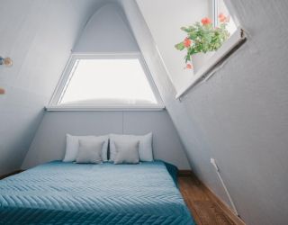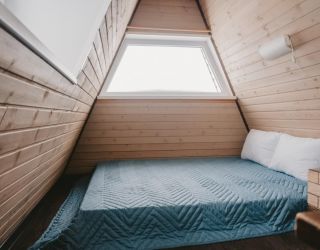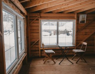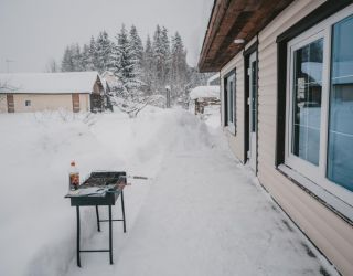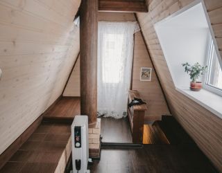 Домик имеет необычную архитектуру - две A-Frame крыши с выходом на террасу. На участке бьют ключи с чистейшей родниковой водой. Рядом расположен лес. Озеро в 1 км от дома.