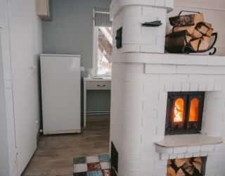 Одним из достоинства домика является камин-лежанка, где холодными зимними вечерами очень приятно проводить время.