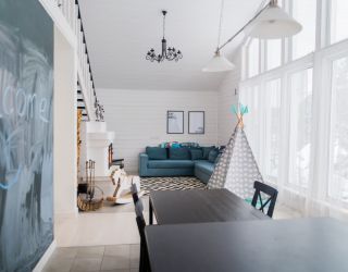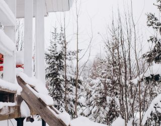 Просторный дом с большими панорамными окнами во всю стену и видом на лес. Гости будут жить в абсолютной тишине и спокойствии всего в 15 км от Петрозаводска.