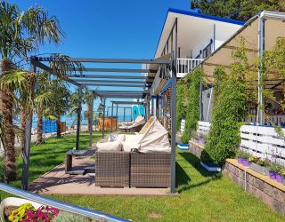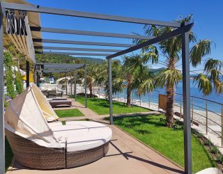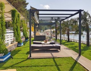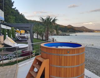 Собственный огороженный галечный пляж оборудован лежаками и зонтиками. Глубина начинается примерно в 5 метрах от берега. Для маленьких детей, не умеющих плавать, организована зона для купания.