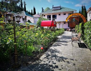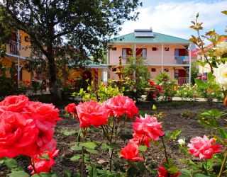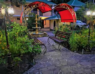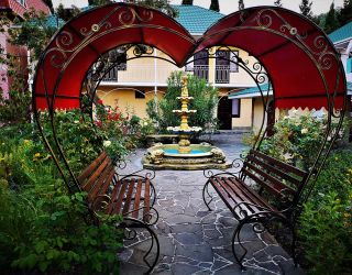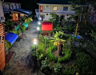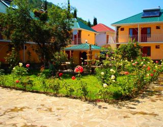 а в центре организован небольшой фонтанчик. Комплекс включает в себя нескольких небольших двухэтажных коттеджей. В распоряжении гостей 30 номеров с удобствами. В комнатах есть все необходимое для отдыха — индивидуальный санузел с душем, телевизор, кондиционер, холодильник, ряд номеров оснащен мини-кухней. Везде предусмотрены балконы.