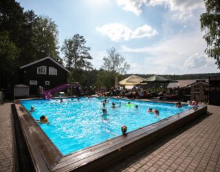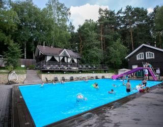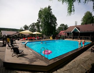 Для досуга на территории работает банный комплекс с хамаммом, сауной и бассейном с аэромассажем. Также есть отдельно стоящая русская баня на дровах и большим выбором веников на любой вкус. С мая по сентябрь месяц к услугам гостей открыта аквазона. Бассейн подогреваемый, оснащен многоцветным освещением, установлена водная горка «Кураж», водопад «Кобра». Пляжная зона на основной террасе вмещает 60 человек, VIP-зона рассчитана на 10 шезлонгов. Работает бар со спецменю и богатой коктейльной картой. Для детей предусмотрена мелкая зона. На территории оборудована детская площадка рядом с рестораном. В распоряжении малышей горка, качели и веревочная лестница.