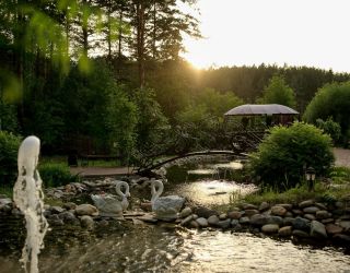 Просторная территория отеля утопает в зелени. Гости могут прогуляться по парку «Любви и верности», посидеть в беседках, расположенных по периметру клуб-отеля. Для размещения предлагается одноэтажный гостиничный корпус с несколькими категориями номеров от стандарта до апартаментов; и 8 гостевых коттеджей, оснащенных кухней, баней или сауной, в некоторых имеется банный чан. Все номера, независимо от категории, оборудован персональным санузлом с душем, ТВ и холодильником.