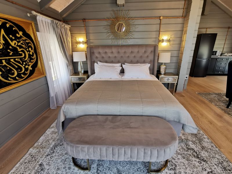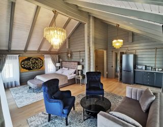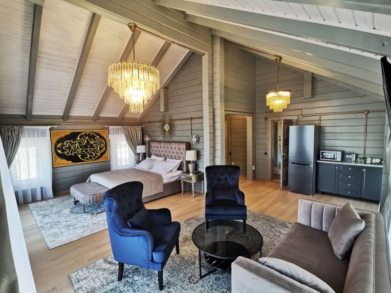 Комфортабельный номерной фонд представлен несколькими категориями от 1-комнатных стандартов до 2-этажных коттеджей. В каждом номере – удобные кровати с ортопедическими матрасами, ТВ, холодильник, телефон, кондиционер, чайник, персональная ванная комната с душем, феном, халатом, набором полотенец и туалетных принадлежностей. В коттеджах оборудована кухня с обеденной зоной. Рядом на свежем воздухе - беседка с мангалом.