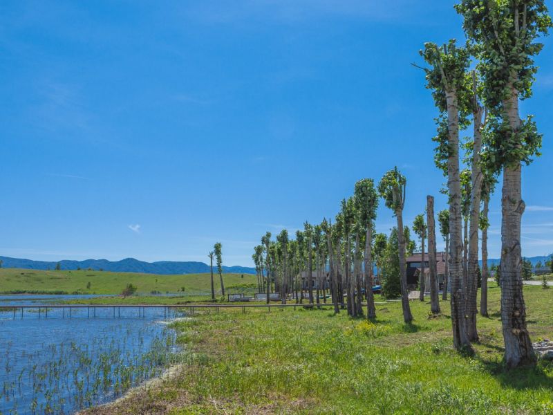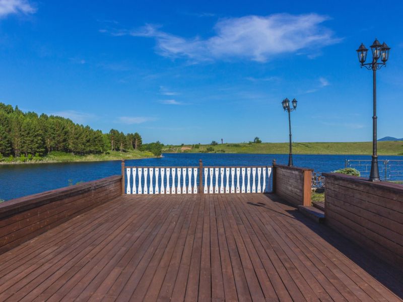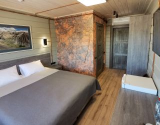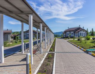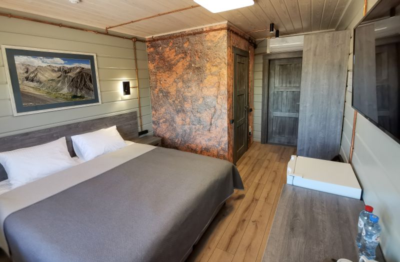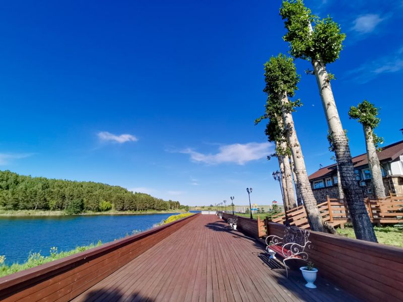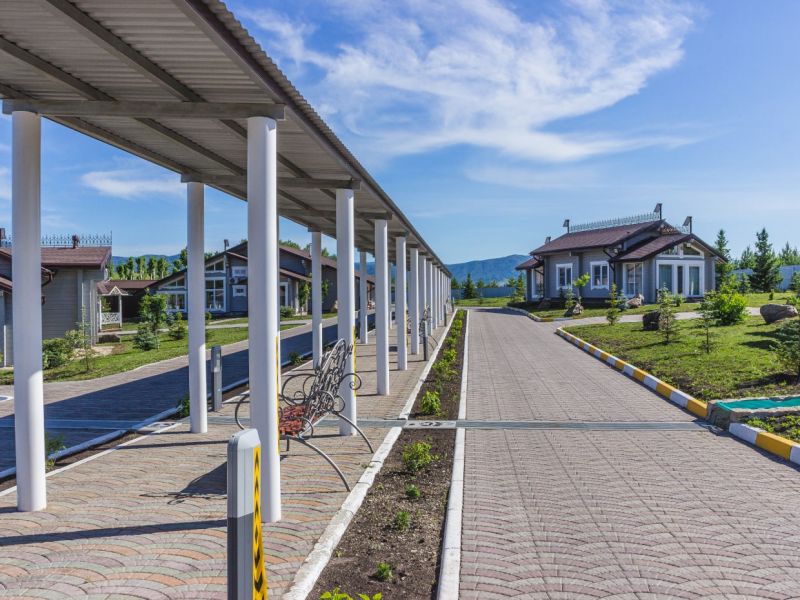 Отель раскинулся в экологически чистом месте, вдали от шумных трасс и городов. Вокруг только водная гладь, хвойный лес и поля с травами. Чистейший свежий воздух предгорий с повышенной ионизацией и высоким содержанием отрицательных аэроионов. Территория отеля занимает просторную площадь в 4 га, жилой фонд рассчитан на проживание до 70 человек. Это позволяет создать атмосферу тишины и уединения для всех гостей. При строительстве отеля уделили максимум внимания натуральности и безопасности материалов. Все дома и бани построены из сибирской и алтайской сосны и кедра. Вместо асфальта – экологичная брусчатка, а для энергоснабжения установлены солнечные панели.
