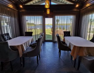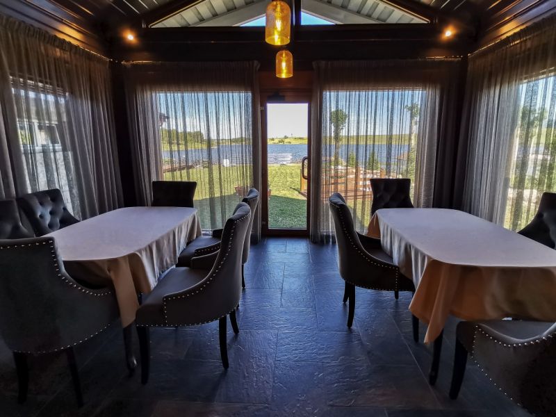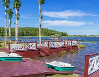 Гордость парк-отеля – широкое красивое озеро с песчаным берегом. Вода в нем чистейшая, потому что под озером протекает русло горной реки. Оборудована пляжная зона с шезлонгами и зонтами, чтобы гости могли с комфортом загорать и купаться. В жаркую погоду приятно совершить прогулку по озеру. Доступен прокат моторных и весельных лодок, катамаранов, гидроциклов. Любители рыбалки могут половить в озере карпа, карася, окуня, толстолобика и щуку. Пойманную рыбу можно пожарить самостоятельно на мангалах, которыми оборудованы беседки, или заказать приготовление поварам.