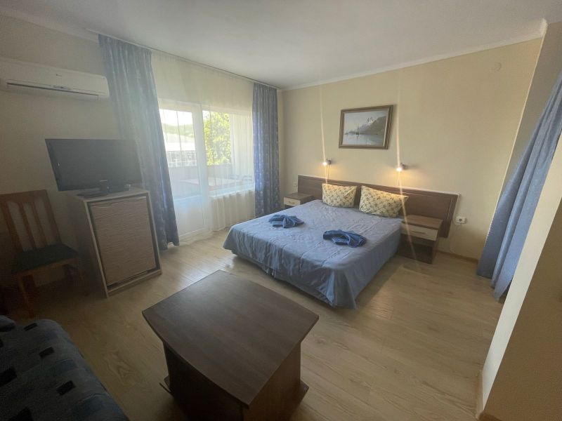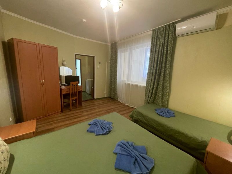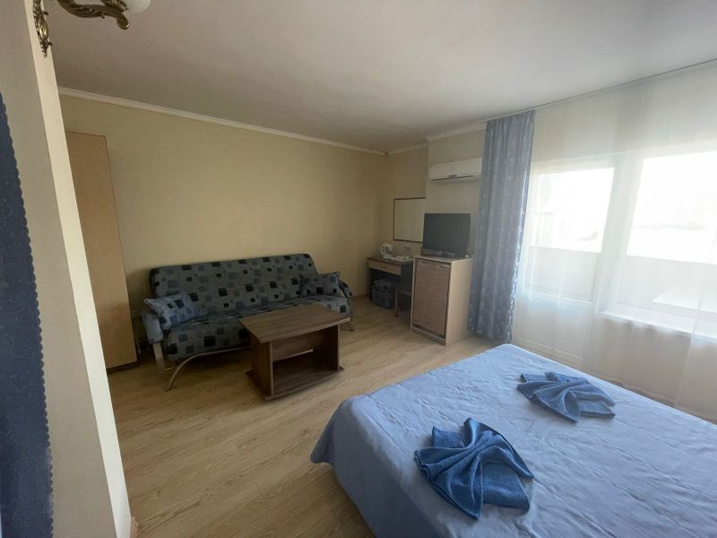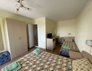 Из плюсов: море 100 метров по прямой, из окна море видно, слышен шум прибоя и запах моря. Номерной фонд различен, есть выбор. Чисто, аккуратно, хотя гостиница не новая. Хорошее обслуживание, гуманные цены. Заказывать номер надо заранее. В целом плюс. Из недостатков: всё как обычно,.хочется больше, лучше , дешевле:).. В целом бюджетно, рекомендую