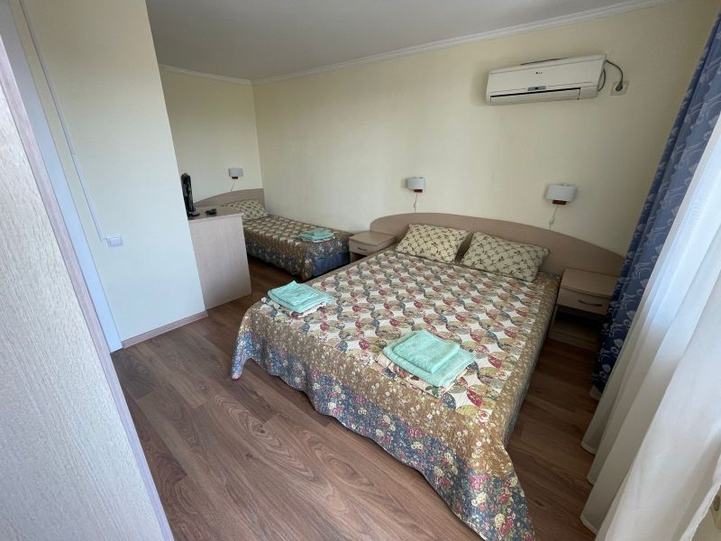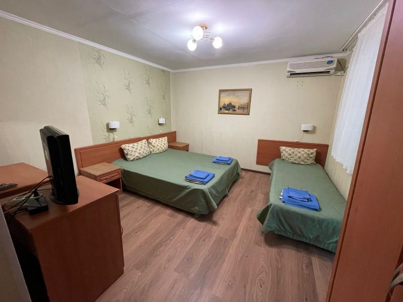 Достаточно приятное место для отдыха, размещались в двухкомнатном номере семьёй. Гостиница находится на территории детского лагеря, на закрытой охраняемой территории, поэтому тишина и спокойствие! Парковка, терраса с мангальной зоной. Питание по предварительному заказу - пожалуйста. До пляжа рукой подать, 2 минуты ходьбы. Владелец гостиницы Артём- отзывчивый, хороший парень, видно старается для комфортного проживания гостей. Рекомендую !