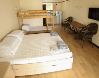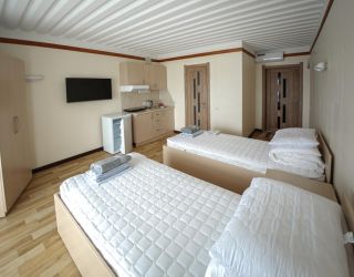 Для размещения на базе отдыха предлагаются комфортабельные домики и 2-этажный корпус. Независимо от категории, в каждом номере предусмотрена кухонная зона с необходимой техникой и посудой, отдельная ванная комната с душем, ТВ, в некоторых номерах – кондиционер.