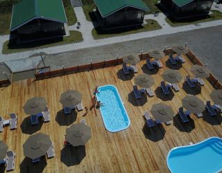 На территории работает ресторан, где могут заказать питание по меню. В летний период функционирует 3 бассейна с подогревом. Оборудована большая игровая площадка для детей с батутом и горками. На берегу действует русская баня.