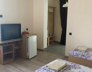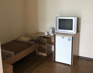 Современный четырехэтажный корпус отеля разместился на территории пансионата «Прибой» недалеко от морского побережья. Жилой фонд состоит из номеров разных категорий, в каждом предусмотрена ванная комната с душем, кондиционер. ЖК-телевизор, электрочайник. В ряде комнат есть балконы, с которых открываются виды на море.