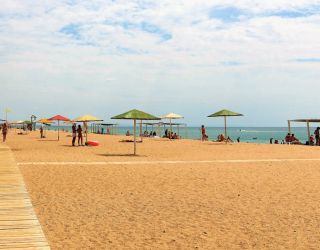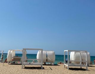 Всего в 80 метрах от жилых корпусов находится пляж. Белоснежный пляж из кварцевого песка хорошо оборудован: на побережье есть все необходимое для отдыха — шезлонги, навесы, душевые, раздевалки, туалеты