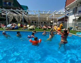 Во внутреннем дворике оборудована мангальная зона. В распоряжении отдыхающих открытый бассейн (без подогрева) с шезлонгами для загара.