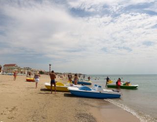 Поездом до ж/д вокзала г. Евпатория, далее на автобусе «Ялта-Черноморское» до остановки «По требованию» далее пешком 1,44 км до клуб-отеля.