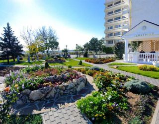 Самолетом до аэропорта г. Симферополь, далее на рейсовом автобусе «Симферополь-Черноморское» до остановки «Прибрежное», далее на рейсовом автобусе №3 до остановки «ул. Строительная», далее пройти пешком 760 м до санатория.