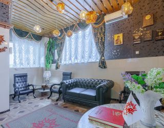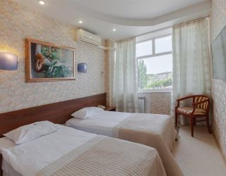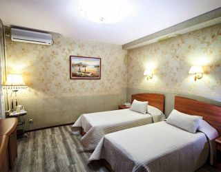 5-ти этажное здание отеля с рестораном включает в себя 2-х местные номера категории Стандарт, Комфорт и Люкс. Номера с классическими интерьерами оснащены кондиционером, ЖК-телевизором, холодильником, электрочайником, санузлом с ванной или душем. Некоторые номера Люкс оборудованы собственной сауной и камином.