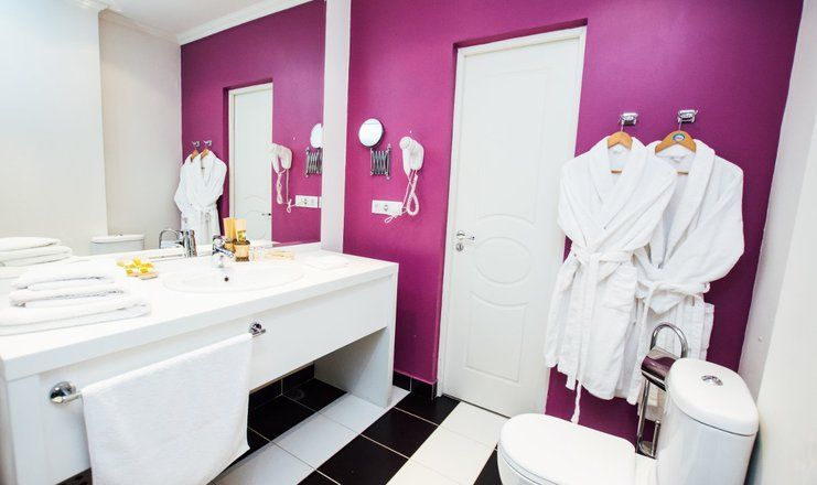 Все номера оборудованы современной мебелью, телевизором с плоским экраном, кондиционером, холодильником, комфортным санузлом