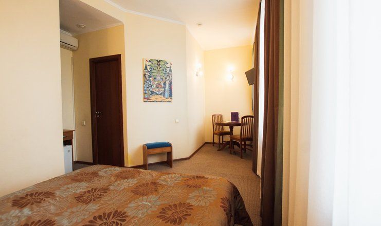 Номерной фонд, рассчитанный на единовременное размещение 256 человек, приготовил для гостей номера категории Эконом, Стандарт, Премиум, Люкс. Все они оснащены санузлом с душем или ванной, бытовой техникой – телевизором, холодильником, кондиционером, и необходимыми предметами мебельного гарнитура.