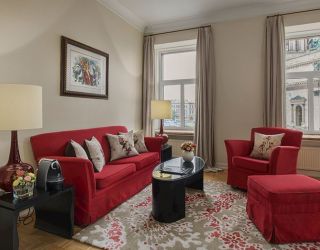 Четырехэтажное здание отеля, выстроенное еще в начале XIX века, разместилось на Исаакиевской площади. Гостей ожидает 192 номера разной категории комфорта. В дизайнерских интерьерах, выдержанных в современном классическом стиле, светлая мебель, паркетные полы, натуральные материалы, а отделка в ванных комнатах выполнена из настоящего итальянского мрамора. В двухместных номерах есть все необходимое как для краткосрочного, так и для длительного пребывания: кондиционер, фен, телевизор, беспроводной интернет, а окна большинства комнат выходят на Исаакиевский собор.