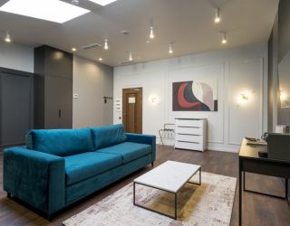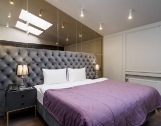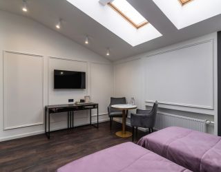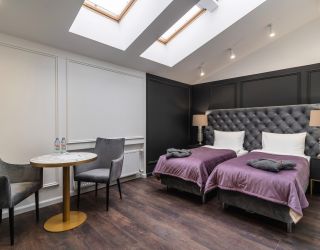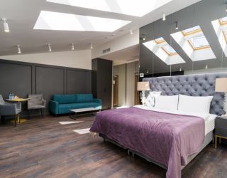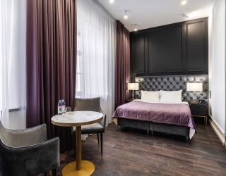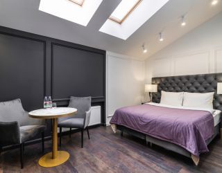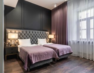 Отель располагается в 5-этажном историческом здании с мансардой, в котором ранее находилась казарма железнодорожного батальона. Обширный номерной фонд, способный единовременно принять более 250 человек, предлагает двухместные комфортабельные номера различной планировки. На 1-4 этажах расположены апартаменты с кухней, 5 этаж - мансардные номера без кухни (с холодильником и чайной станцией). Номера оснащены просторным санузлом с душем, оборудованной мини-кухней и необходимой бытовой техникой, в том числе кондиционерами и плазменными телевизорами. Во всех комнатах современный интерьер, выполненный по индивидуальным дизайнерским проектам в стиле арт-деко.